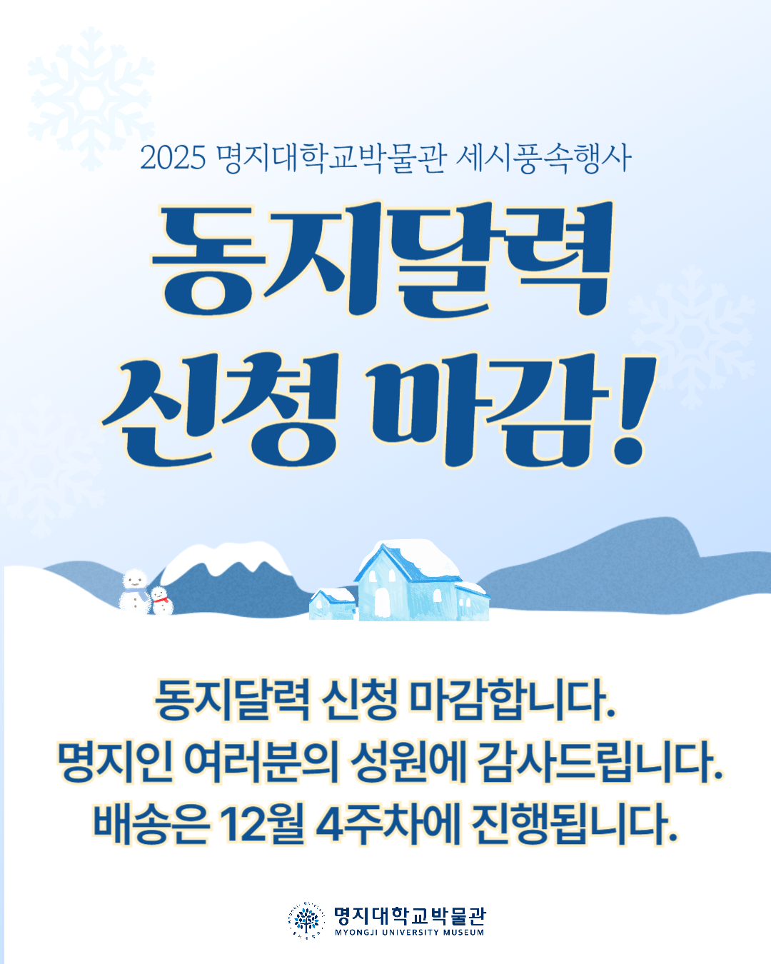 fnctId=bbs,fnctNo=1199 [동지달력] 신청 마감합니다. 작성일2025.12.12 수정일2025.12.12 작성자 이*아 조회수43 첨부파일 첨부파일이(가) 없습니다.